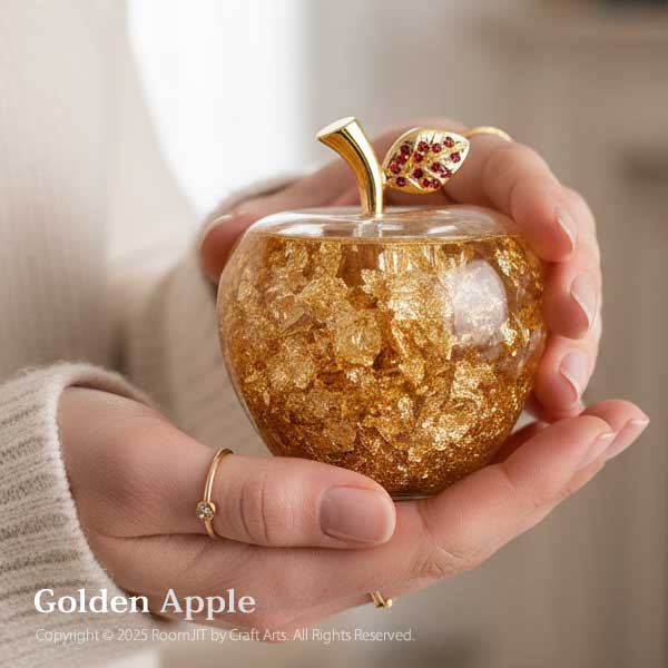 コロンとした形が可愛らしいリンゴ。ゴージャスな仕様がインテリアのアクセントに。風水グッズとしてお部屋に飾れば、金運アップも期待できると言われています。