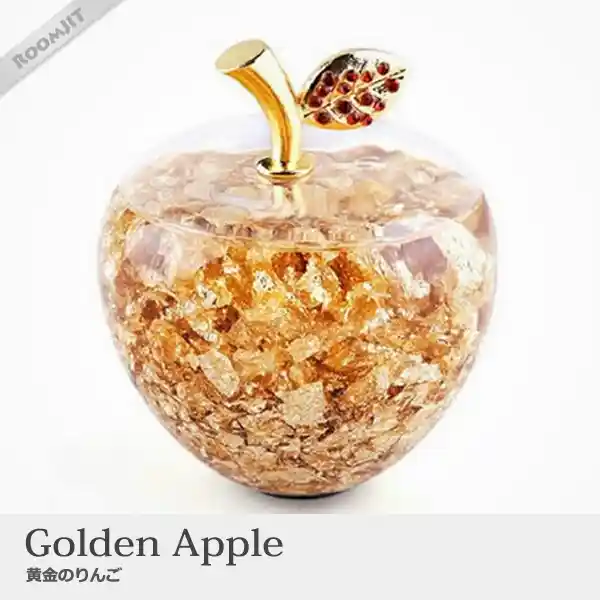 ゴールドメッキを贅沢に水の上に浮かべた豪華なりんごの置物は、金運アップの西向きにおくのがおすすめです。