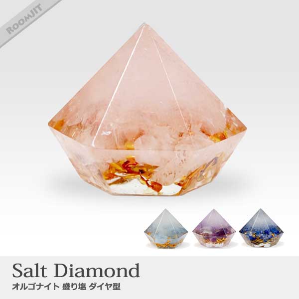 邪気払い・浄化の象徴とされてきた「盛り塩」を、レジンにたっぷりと納めた可愛らしいダイヤ型のオルゴナイトです。世界に一つだけの特別な開運アイテムやインテリアアイテムとしても毎日の暮らしに寄り添います。