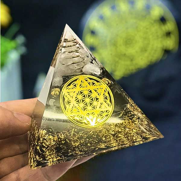 輝くゴールドカラーと古代より魔除けとして使われている「六芒星」が印象的なオルゴナイトです。神秘のエネルギーを宿す、幻想的なデザインのオルゴナイト。見る角度によって光の反射や色味が変わり、幻想的な世界観と共に輝きを放ちます。